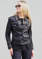 Danni Studded Leather Jean Jacket | Black