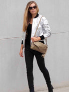 - The softest buttery leather is fashioned into a cute bomber shape