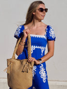 - Braided handles with unique tassel on each end