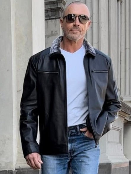 A faux fur collar adds the finishing touch to the classic zip through leather jacket