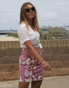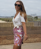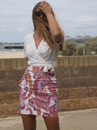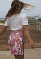 Worn with the matching jacket or teamed with a plain top, Cadelle’s paisley printed mini is a standout piece