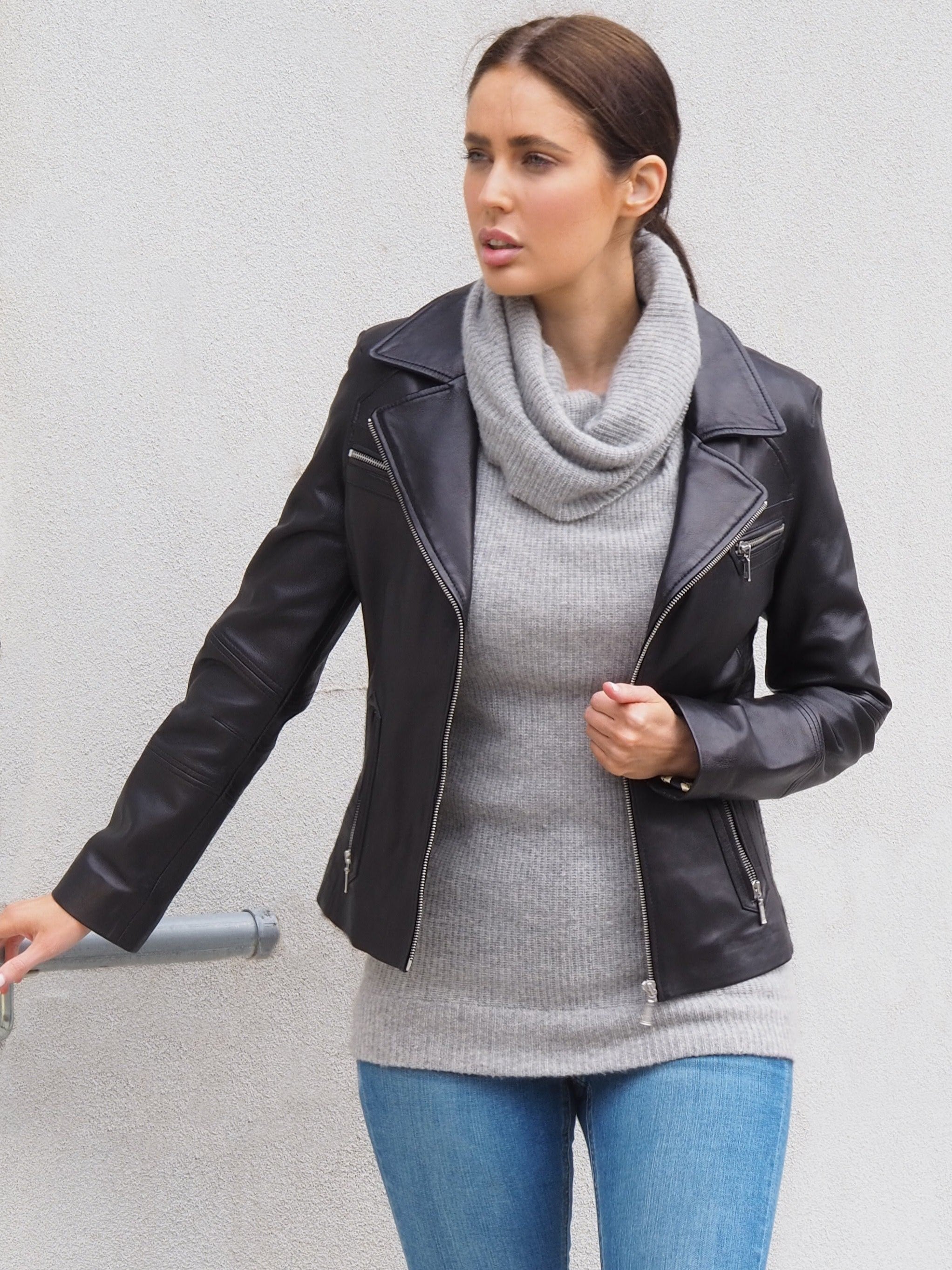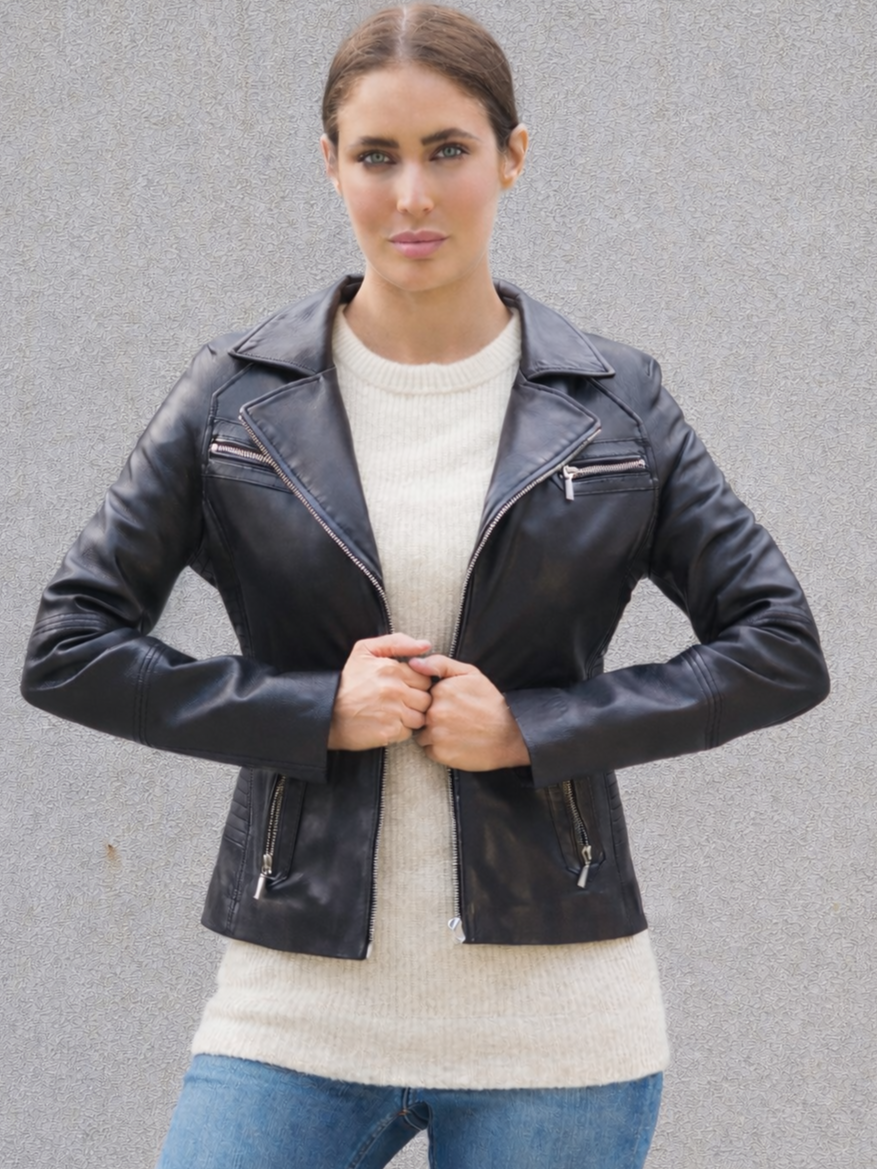 Stunning design lines upscale this classic leather jacket